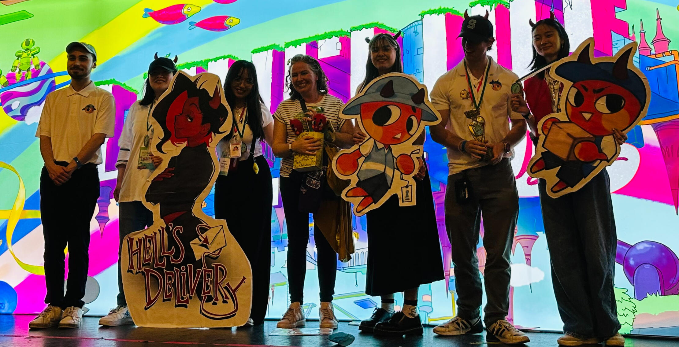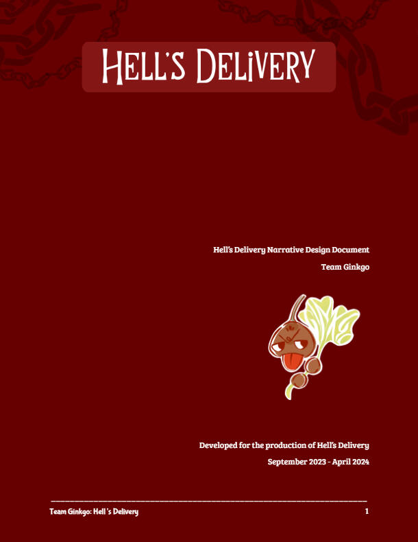 Welcome to Hell's Delivery, where you and a "friend" are delivery demons competing against each other for a single promotion.Sabotage and cooperate under the watchful eyes of the Devil while delivering strange packages for even stranger customers.Placed 3rd for People's Choice Award at the 2024 LevelUp Student Showcase!