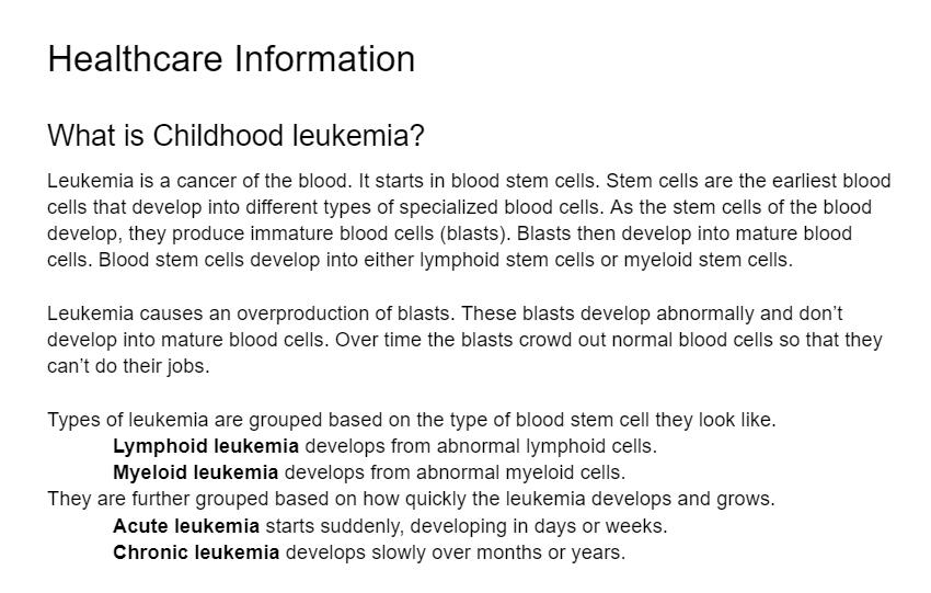 Accurate research compiled in a document to refer to while writing dialogue.Research was done on universal and privatized healthcare systems, leukemia treatments, and healthcare costs (as of 2023).